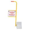 Constructed of extruded lightweight aluminum that is easy to handle. Features a serrated top to grip the tire and a triple edged bottom to grip the ground. Optional handle and sign attachment available.