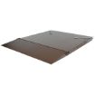 Heavy duty steel container ramp allows for easy loading/unloading of shipping containers when placed on ground level. Hinged flip-over bridge allows for easy transportation and compact storage. Tapered lip provides smooth transition into container at various heights. Built in fork pockets in base for convenient fork truck positioning.